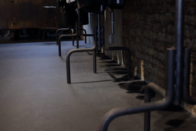 3本が1本に纏まる脚。硬いイメージが在る鉄だがこういった曲げも可能だ。