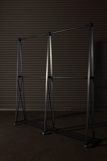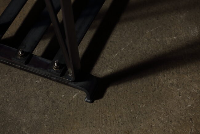 今回のハンガーラックはフレームを一枚の鉄で曲げて作ってみた。シームレスにする事により鉄特有の重い見た目が軽減され、スタイリッシュに仕上がった。