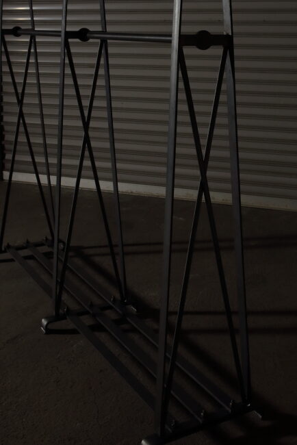 アパレルの店舗には必須アイテムと言っても過言では無いハンガーラック。先日、BACKLASH OSAKAで納品させて頂いた分割式とは違い、今回は完全に組立式だ。