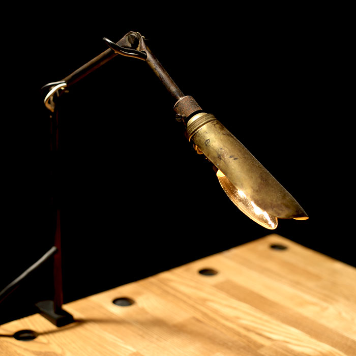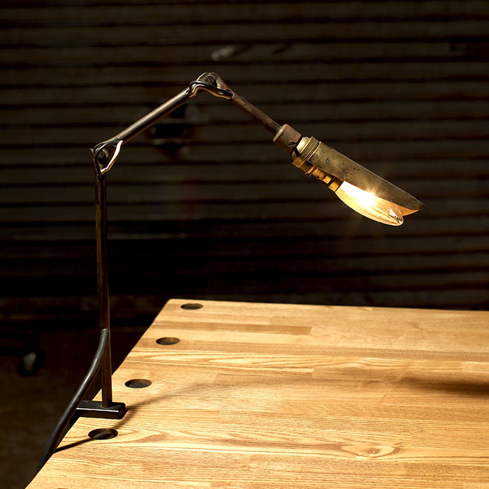 Light 003 材質 : 真鍮、鉄 / H600(関節を伸ばした状態) クランプ部H90(55㎜まで掴めます) ソケット口金B22